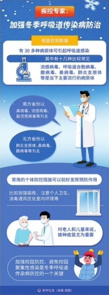 鉴于流感病毒的特点,保护自己和家人最好的办法就是在冬季呼吸道病的高发季节,努力做到勤洗手、少聚集、戴口罩、多通风、强身体,老人、儿童等易感人群尽量及时接种疫苗。疾控部门将加强监测,及时把监测情况、预防措施、注意事项等告知大众,让广大群众熟悉和掌握冬季呼吸道传染病的防控知识,是预防患病的最有效的方法。
