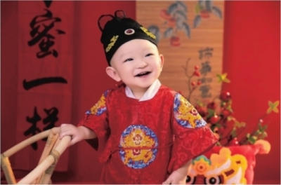 提前网购春联、红灯笼、红色新年套装,花费半天时间在家里的角落精心布置好道具……12月初,童女士给3个月大的儿子吨吨拍了一组新年照。