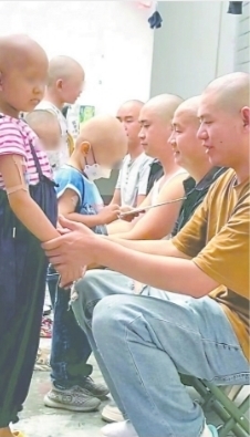 孩子是五位爸爸生活的重心。大家聚在一起,聊的都是孩子:你家孩子的病情怎么样了?哪种药在哪个阶段效果最好?化疗会掉头发,为了照顾爱美的女孩,五个爸爸一起剃了光头。孩子偶尔有出院的时候,五家人也常在一块玩儿,解道成看着可爱又坚强的宝宝们,告诉自己一定要坚持下去。