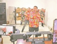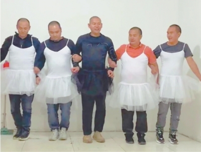 除了穿上东北大花袄直播跳舞,五个光头爸爸还穿着裙子,扮成“5只小天鹅”跳舞。“实在有点勉为其难,谈不上才艺,水平有限,但我们努力了。”李章兵说,他们抽空排练了《小天鹅》《狼爱上羊》《夜上海》等5个舞蹈,从笨手笨脚到熟练,从直播时不敢说话到能有意识地烘托氛围,为了孩子确实拼了。