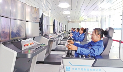 项目办公室对面(工地围挡外)有一个由7间集装箱房组成的远控塔机控制室,走进去一看,感觉像游戏机厅。7台“游戏机”前面各自搭配6块大屏共11个画面,操作手正移动着操纵杆。赵贻强说:“这是我们的塔吊司机,我们通过远程控制系统并借助塔吊上安装的数十个摄像头,司机师傅们在地面上就可以开塔吊。”