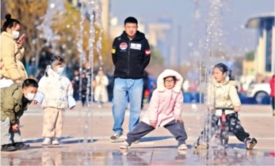 12月29日,风和日丽,不少市民来到武汉关广场游玩、晒太阳。 记者胡冬冬 摄 |
