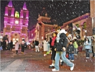 12月25日,华灯初上,光谷步行街上飘起了浪漫的“雪花”,纷纷扬扬的“雪花”与霓虹闪烁的街景交相辉映,吸引路人打卡拍照。 记者高勇 摄 |