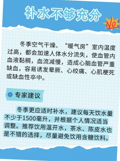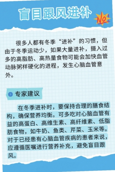 进入数九寒天后,全国多地寒意加重。中医理论认为,寒邪易导致气血运行不畅,血液凝滞,导致阻力小血管收缩,心输出量增加,血压升高,造成心脑血管疾病高发。江苏省中医院神经内科主任中医师仓志兰在接受采访时提示,以上六个生活习惯会增加心脑疾病发生的风险,尤其要注意避免。