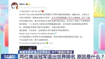 总台央广记者张闻:两位运动员在各自的声明当中,已经非常坦诚表达了退出世界排名的原因。
