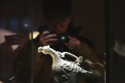 第三单元“兴动天下”,展出山西博物院藏兽形觥、兽面纹方彝、申五矩甗,山西省考古研究院藏虎形玉佩、鸟形玉佩,上海博物馆藏青铜器毛公方鼎,梁带村芮国遗址博物馆藏凤鸟纹铜方壶等文物。这些展品展现了晋、秦两国在政治、军事、经济、文化等领域的强大实力,推动了当时社会制度的转变和社会生产力的发展。