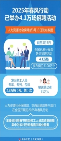 2025年春风行动已举办4.1万场招聘活动