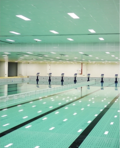 恒温游泳池为一座标准游泳池,有8条泳道。现正在进行设备调试,开放时间将于近期公布。