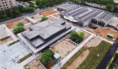永久展区南侧的沙湖公园C区,改造提升工程也基本完工。记者现场看到,中轴线和主园路均已拓宽刷黑,中轴线两侧12个创意阳台主体已建成,只待加装护栏。圆形滨水广场改造提升已完工,正在做布展准备。