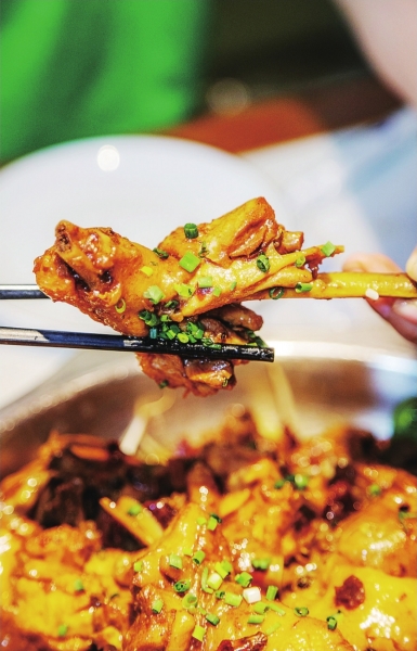 佳成川菜馆隔壁的醉香源生活菜馆,也暗藏不少地道川菜。辣子鸡分量超足,端上桌,食客们无不张大嘴惊叹“这么大”,味道更是一绝!过水鱼也是每桌必点,开水烫过再淋料汁,肉质鲜嫩,就着汤汁入口,完美。