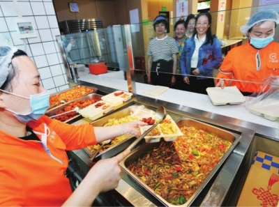 从服务社区近千名60岁以上老人群体的“15分钟生活圈”,到服务周边五环天地写字楼46家企业、500余名员工。五环社区积极链接资源,由央企五环公司无偿提供场地,国企广美公司投资,在小区里办起广美幸福食堂,并成立食堂理事会,邀请2名居民任监督员。
