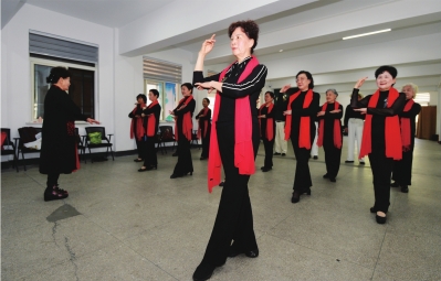 五环小区居民付友英:社区爱夕阳形体模特队成立三年了,平均年龄70岁左右,大家一起开心学习,延迟衰老、挺拔身姿。