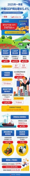 国家统计局副局长盛来运4月16日在国新办举行的新闻发布会上介绍,一季度国内生产总值(GDP)同比增长5.4%,增速高于去年全国5%的增速,也高于去年一季度5.3%的增速,增长稳中有升,增速在全球主要经济体中名列前茅,延续了去年以来持续稳中向好、稳中回升的态势。