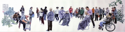 曹连润在一次便民服务活动中深受感动,发挥绘画特长,将这一暖心场景记录下来。作品完成后,居民们纷纷称赞其“形象传神,充满生活气息”。这幅画不仅展现了社区便民服务的细致周到,也体现了居民对社区工作的认可与支持。