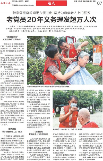 老党员20年义务理发超万人次