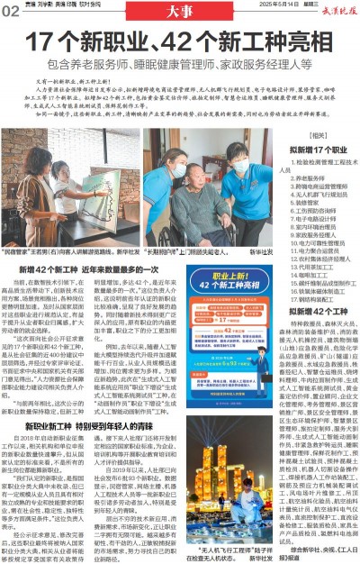 如同一面镜子,这些新职业、新工种,清晰映射产业变革的新趋势、社会发展的新需要,同时也为劳动者就业开辟新赛道。