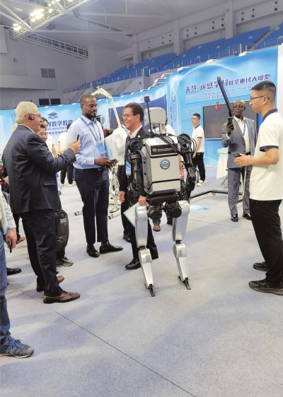 “我是土生土长的湖北人。”武汉大学自主研发的人形机器人“天问”和“小天”成为会场焦点,他们和嘉宾们打招呼的方式幽默风趣,不少外国嘉宾被这两个人形机器人吸引,排着队争相和它们握手、合影、击掌互动,现场欢声笑语不断。