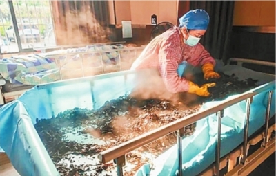赵应红介绍,配制好的药方,要经浸泡、蒸制等工序,处理完后平摊在睡药床上,与特制药酒混合。待温度适中,一半平铺,让患者平躺在药上,再覆盖上剩余的一半药,包裹周身(除头面部外)。再用不透气的无纺布包住,覆盖被褥保温,一次治疗时间约30分钟。