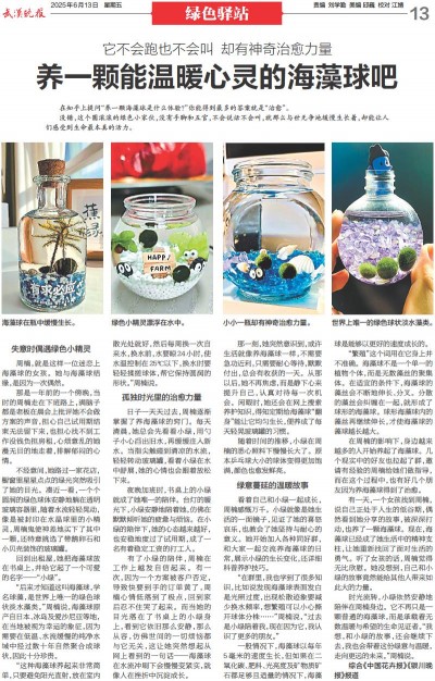 时光流转,小绿依然安静地陪伴在周楠身边。它不再只是一颗普通的海藻球,而是承载着无数温暖与希望的生命见证者。“我想,和小绿的故事,还会继续下去,我也会带着这份绿意与温暖,走向更远的未来。”周楠说。