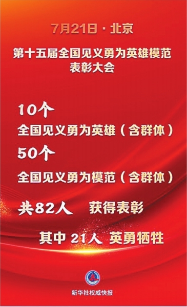 据新华社电 第十五届全国见义勇为英雄模范表彰大会21日在京召开,隆重表彰60个见义勇为英雄模范个人和群体。中共中央政治局委员、中央政法委书记陈文清出席会议并讲话。