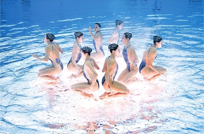 作为预赛第一名,由冯雨、常昊、程文涛、向玢璇、戴诗意、李岫宸、林彦含、徐汇妍组成的中国花游队在决赛最后一个出场。伴随着动感的音乐,她们在水中上下起伏,一次次完美的托举、跳跃、转体、队形变化,让现场观众看得如痴如醉。最后一个难度分申报动作,姑娘们在水中围成一圈,用一连串让人眼花缭乱的转动,诠释着万物在引力之下都有运行规律的动作主题,音乐停止,现场响起欢呼声,主教练张晓欢双手同时竖起大拇指——348.4779分,中国队以领先亚军日本队13.7547分的明显优势夺冠。
