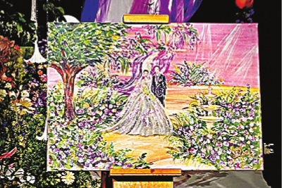 通常,婚礼绘画师会提前与新人沟通,了解婚礼主题、新人的喜好以及想在画作中呈现的元素。现场也常常需要随机应变。婚礼现场的布置时间、灯光调试时间等,都会影响画师的创作进度。有时,他们甚至要像“抽盲盒”一样,在场地还未完全准备好的情况下,凭经验开始创作。“我们一般会提前到现场准备,如果能提前看到效果图当然最好,但是很多时候需要根据实际情况调整。要是现场有小改动,我们也要及时调整,确保画作能完美呈现婚礼氛围。”小朱说。