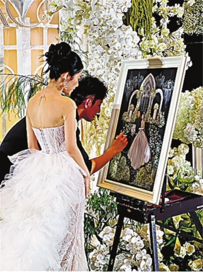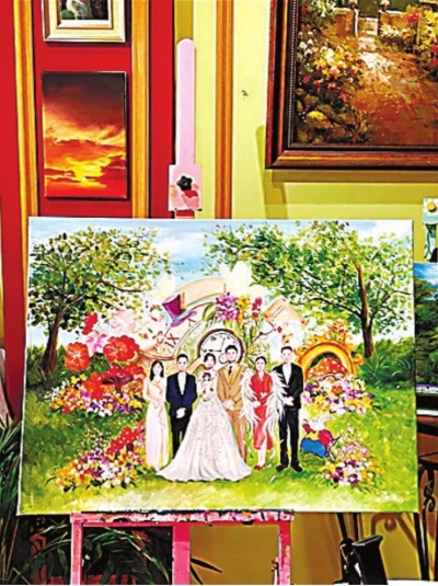 “完全是现场试水。”芳芳笑着说,“连新人都不知道我们要做什么。”没想到,这次尝试却收获了意外之喜,新人对最终作品十分满意,还支付了一笔在当时看来较为丰厚的费用。后来,小朱和芳芳将这个作品发布到社交平台上,陆续有客人前来咨询,两人从此开启了婚礼绘画师之路。