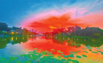 《荷韵:黄昏中的水墨江城》