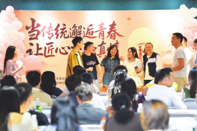 9月27日下午,由武汉市职工服务中心主办、武汉晚报承办的“当传统邂逅青春,让匠心交融真情”中秋交友联谊活动,在武昌区黄鹤楼街道西厂口社区武汉唐书汉旗(黄鹤楼旗舰店)精彩上演。盲盒式自我介绍、默契挑战接力绘嫦娥、共绘嫦娥即兴表演……100余名单身青年职工齐聚黄鹤楼下开启多元交流,共绘传统与青春的浪漫氛围。