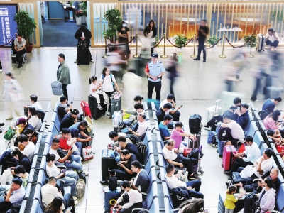 9月29日,旅客在武汉站准备乘车出行。铁路国庆中秋假期运输9月29日启动,将于10月10日结束,为期12天。