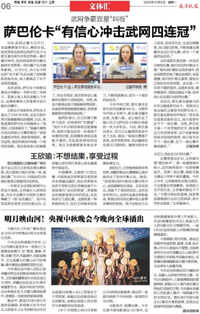 2025武网正赛今日开打。本届赛事强手如云,精彩纷呈。现世界排名前两位的萨巴伦卡与斯瓦泰克将为年终世界第一展开激烈争夺,而武网冠军的归属无疑将对世界第一的归属产生关键性影响。10月5日,当今女子网坛的“双子星”先后出席了武网赛前的发布会,两人都表达了对于冠军的渴望。