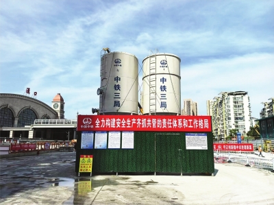 面对如此复杂的施工环境,中铁开投指挥部与中铁三局展现出卓越的技术实力和管理水平。施工过程中,项目部先后创新采用跳仓开挖、人工掏槽检缝、预设袖阀管和止水钢板机械压浆等先进施工技术;引进支撑轴力伺服系统、应急注浆系统和阶梯降水等周边环境管控机制;组织降水管理专班和应急抢险队等专门管理架构,通过施工组织板块化管理和施工区域安全分级管控制度,实现管理人员24小时无缝交接班,强力保障主体结构施工安全。