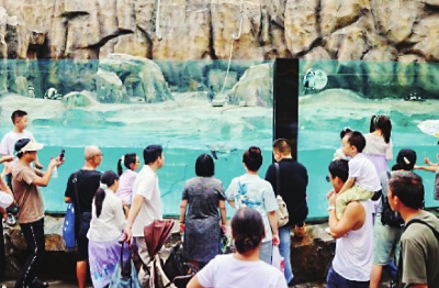 节日期间,武汉动物园每天迎来2万余名游客。不少家长将孩子扛在肩膀上观看大熊猫、小熊猫、非洲狮、洪氏环企鹅等动物明星。