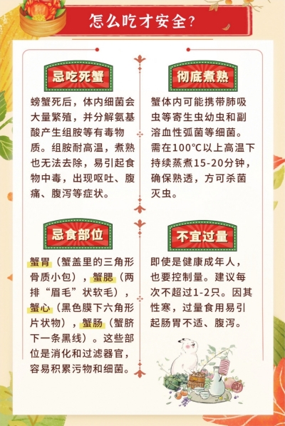金风玉露,蟹肥菊黄,又是一年品蟹时。膏黄丰腴的大闸蟹已集中上市,然而这份美味背后却暗藏健康玄机。