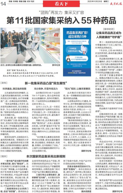 药价降了质量也要跟得上。梳理此次集采可以看出,保障质量的要求贯穿始终:在集采流程方面,进一步收紧药品质量的“口袋绳”,前期通过科学的品种遴选,聚焦上市多年、临床使用成熟的“老药”,临床使用风险高的品种暂不纳入;优化医疗机构报量方式,让医疗机构的需求与中选结果更好匹配,为药企提供稳定预期,促进中选产品保质保量供应。