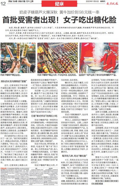 近日,第一批爱吃奶皮子糖葫芦的“受害者”出现了,杭州一名女子每天都要买几串解馋,最终吃成了“糖化脸”。