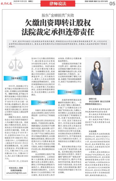 欠缴出资即转让股权 法院裁定承担连带责任