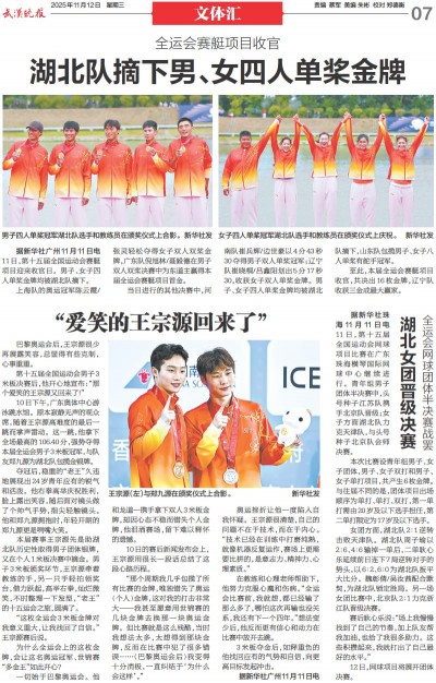 湖北队摘下男、女四人单桨金牌