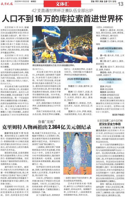 北京时间11月19日,随着世界杯中北美洲区预选赛落幕,2026美加墨世界杯48队中的42支直通队全部出炉。剩下的6个名额,将在明年3月的欧洲区附加赛(16队争4个名额)和洲际附加赛(6队争2个名额)中决出。2026年是扩军至48队后的首届世界杯,四队首次晋级,多队时隔多年重返世界杯。