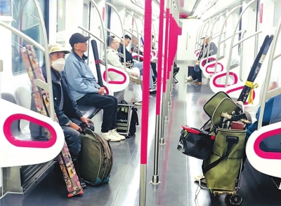 “车上都是熟面孔,见多了都成了朋友!”69岁的胡老先生说,清晨的车厢不像早高峰般拥挤,大家都在老关村站上车,经常凑在一起聊聊鱼情,分享心得,不到半小时的车程,成了每次出钓固定的欢聚时光。