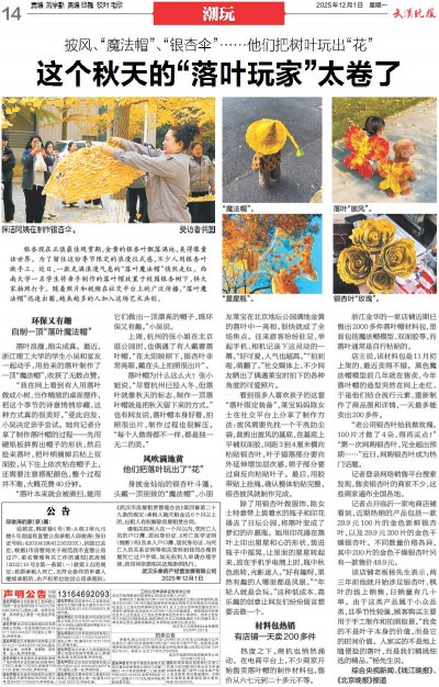 披风、“魔法帽”、“银杏伞”……他们把树叶玩出“花”~~~