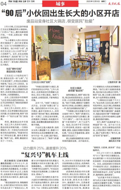 “从小看着长大的小伢回来把环境搞好了,我们肯定要抬桩。”正在门口与邻居聊天的王大爷笑着说。他口中的“小伢”,是在江北社区土生土长的“90后”小伙韩羿飞。去年,在社区网格员的牵线下,他回到“家门口”创业,将困扰居民多年的废品回收站,变成了一家充满人情味的社区火锅店。