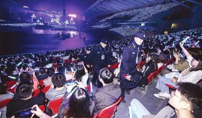 温情细节,让管理“有温度”。针对演唱会场外聚集的大量无票歌迷,分局主动设置“蓄水池”,引导至游泳馆、体育公园等安全区域,并提供移动厕所、临时帐篷、雨衣和食品售卖点,安排志愿者服务,让场外歌迷也能安全、有序地感受氛围,这一暖心举措收获了市民广泛点赞。