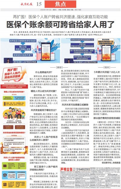 近日,国家医保局、财政部印发《关于做好职工基本医疗保险个人账户跨省共济工作的通知》,要求做好职工基本医疗保险个人账户跨省共济工作,进一步扩大共济范围。你的医保个人账户能帮家人跨省买单吗?能用于哪些支出?