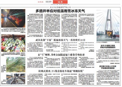 低温冰冻天气一直持续至22日。22日、23日早晨,武汉北部地区最低气温跌至-7~-5℃、南部为-5~-3℃。