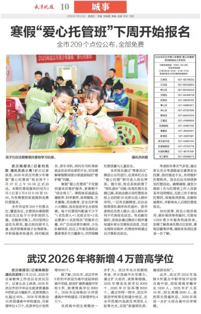 寒假“爱心托管班”下周开始报名