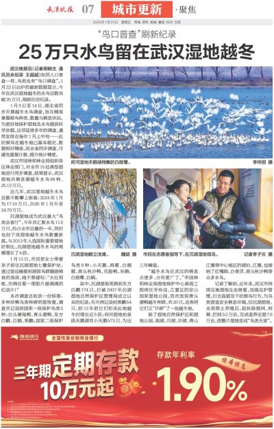 25万只水鸟留在武汉湿地越冬