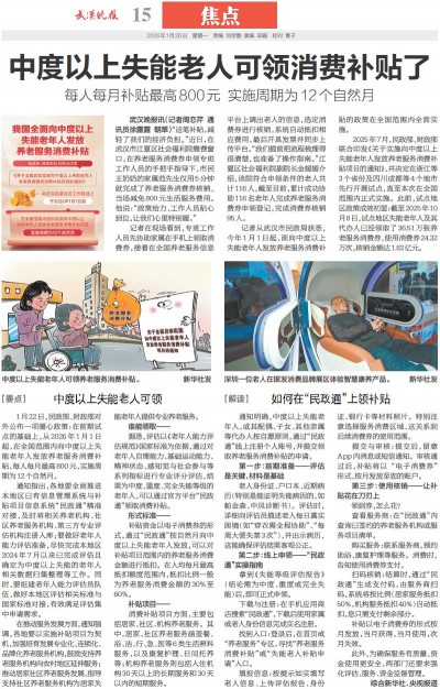 中度以上失能老人可领消费补贴了