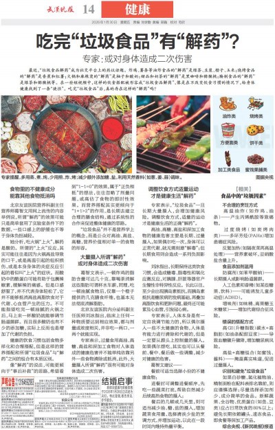 专家表示,“垃圾食品”一旦长期大量摄入,会增加健康风险。调整饮食方式,适量的运动才是健康生活的正确“解药”。