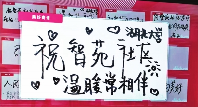如今,走进智苑社区的共享客厅,在社区留言墙上,依然能看到湖大学子写下的美好祝福——“智苑社区温暖常相伴”“祝智苑社区越来越好”“爱在湖大爱在智苑”……